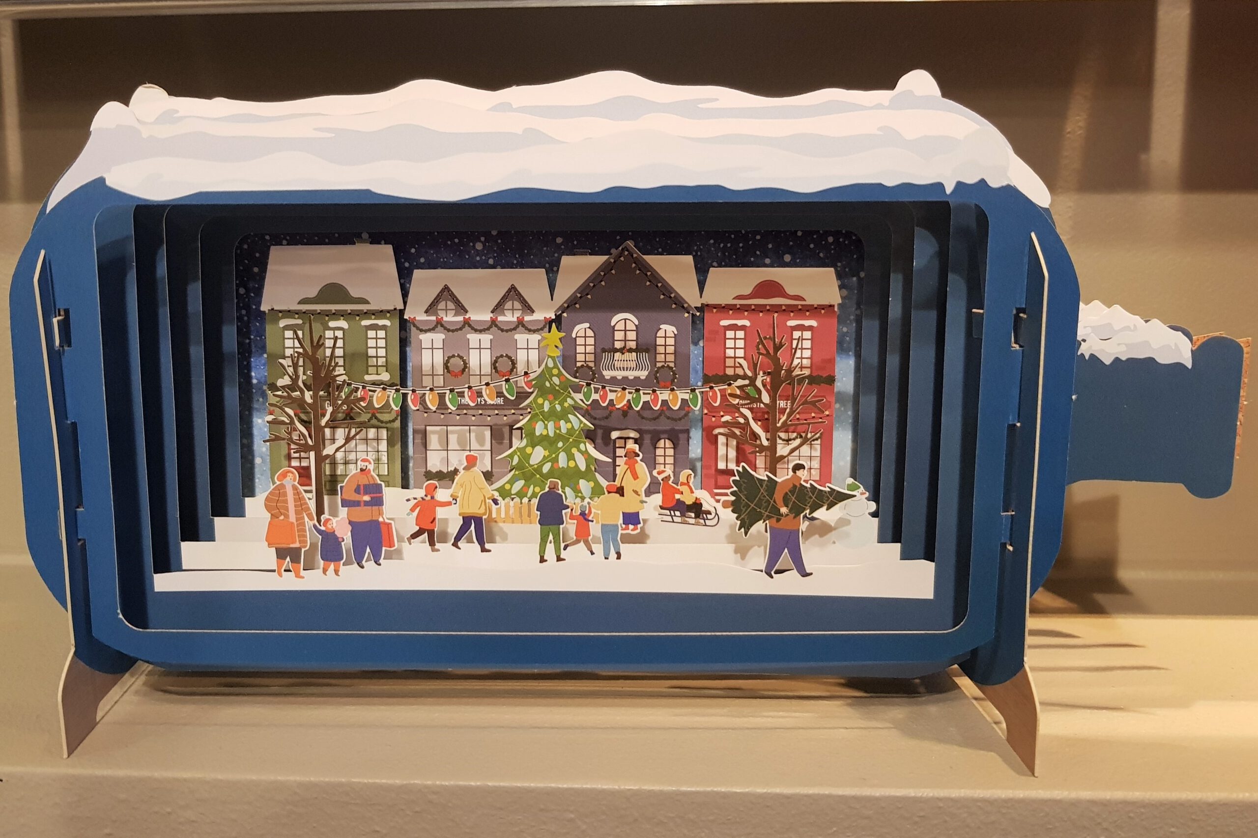 De kerstkaarten, kerststallen en muziekdozen bij Comprint in Sappemeer laten het hart van iedere kerstliefhebber sneller kloppen. Eigenaresse Alice Slagter-Knoppien is dol op kerst, en dan vooral op bijzondere kaarten: “Kaarten met een lieve kerstgroet erop, met glitters, strikken of harten en muziekkaarten doen het altijd goed. Zelf ben ik weg van de 3D-kaarten. Daar hebben we veel verschillende soorten van zoals flessenpost met een fles van papier, een brandveilige kaart die je kunt vouwen tot waxinelichtjeshouder, een kerstster die uit de kaart lijkt te springen of een kaart van hout. Meer dan genoeg keuze om een passende kerstgroet te sturen.”