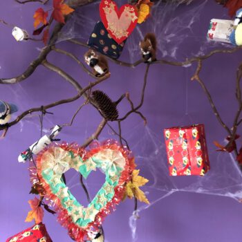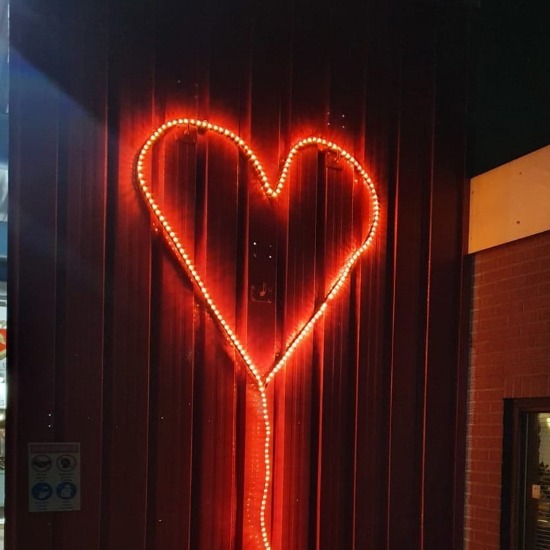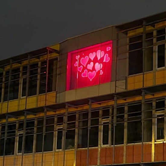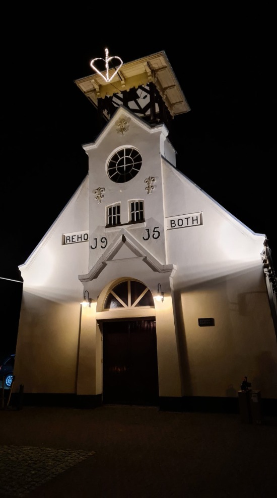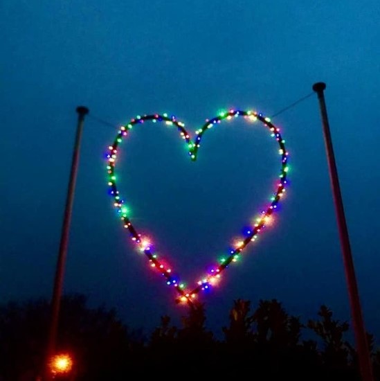 Er zijn nog veel meer plaatsen waar sfeervolle harten verschijnen. Zoals deze, aan de toren van Baptisten Gemeente Muntendam, in het grote raam van het dr. Aletta Jacobs College, bij Camping de Veenborg en bij het Brandweermuseum in Sappemeer. Een licht in donkere tijden en een mooie boodschap: voor nu even uit het oog, maar zeker niet uit het hart!