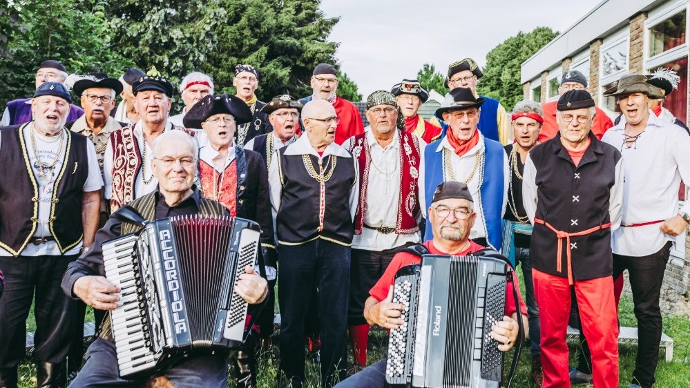 Met ruim twintig koren in Midden-Groningen is er altijd wel eentje in de buurt. In Zalencentrum Brandpunt in Hoogezand oefent iedere woensdagavond Piratenkoor Voorwaarts Voorwaarts. ,,We zingen Nederlandse en Engelse zeemansliederen,” vertelt secretaris en enthousiast lid Hans de Koning. ,,Ter verhoging van de sfeer bij onze optredens in bejaardenhuizen zetten we ook populaire oud Hollandse nummers zoals ‘Bij ons in de Jordaan’ op het repertoire. Bij onze optredens hebben we allemaal piratenkleding aan, erg leuk om daarin op te treden.” Het zingen bij Voorwaarts Voorwaarts bevalt Hans de Koning goed. ,,Ik wilde dat ik twintig jaar eerder lid geworden was. Het is heel gezellig met een leuke nazit erbij, en het zingen maakt je blij, iedere keer weer. Geïnteresseerden zijn van harte welkom om op woensdagavond te kijken of mee te doen. ,,Wel alleen heren, we hebben er geen dames bij.”