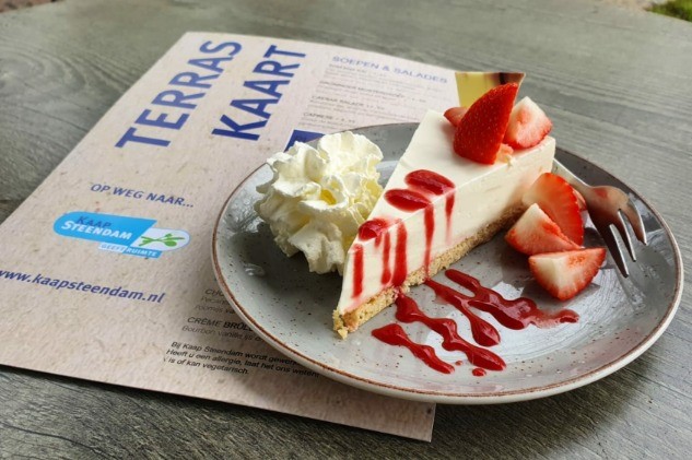 Een nieuwkomer is het terras van Op weg naar Kaap Steendam. Een lange naam, maar dat komt omdat men wacht op de nieuwbouw, een prachtig paviljoen aan het Schildmeer. Gastvrouw Janet van Ommen: ,,We zijn gestart in coronatijd dus hebben ons eerst gestort op afhalen en bezorgen. Nu kunnen we eindelijk onze gerechten serveren op het terras.” De kaart is heel afwisselend, van de vertrouwde saté of hamburger tot parelhoen of lekkere asperges. Er worden veel streekproducten geserveerd, zoals gebak van Zoet en Hartig uit Siddeburen of aardbeien en asperges van Meinardi. ,,De reacties zijn heel positief, ook omdat de gerechten er zo mooi uit zien. En de smaak is heel goed, zelfs van de simpele dingen. Ik hoor regelmatig dat mensen nog nooit zulke lekkere frites hebben gegeten!”