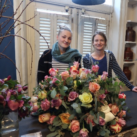 De naam zegt het al, bij Bloem en brocante in Hoogezand vind je naast hele mooie, aparte bloemen ook nog eens brocante. ,,De vorige eigenares had een hele grote voorraad aangelegd, daar verkopen we nu nog steeds van,”  vertelt Irene Hoogstra. ,,En we vullen dat aan met nieuwe woonitems die een brocante uitstraling hebben.” Bloemiste Anouk Achterhof en begeleidster Irene Hoogstra draaien samen met nog drie collega’s de winkel samen met cliënten van De Zijlen (mensen met een beperking). ,,Dat gaat heel goed,” volgens Irene en Anouk. ,,De cliënten doen de kassa, maken boeketten, gaan mee naar de veiling.” Al met al een hele sfeervolle winkel waar bloemen en brocante heel goed samengaan.