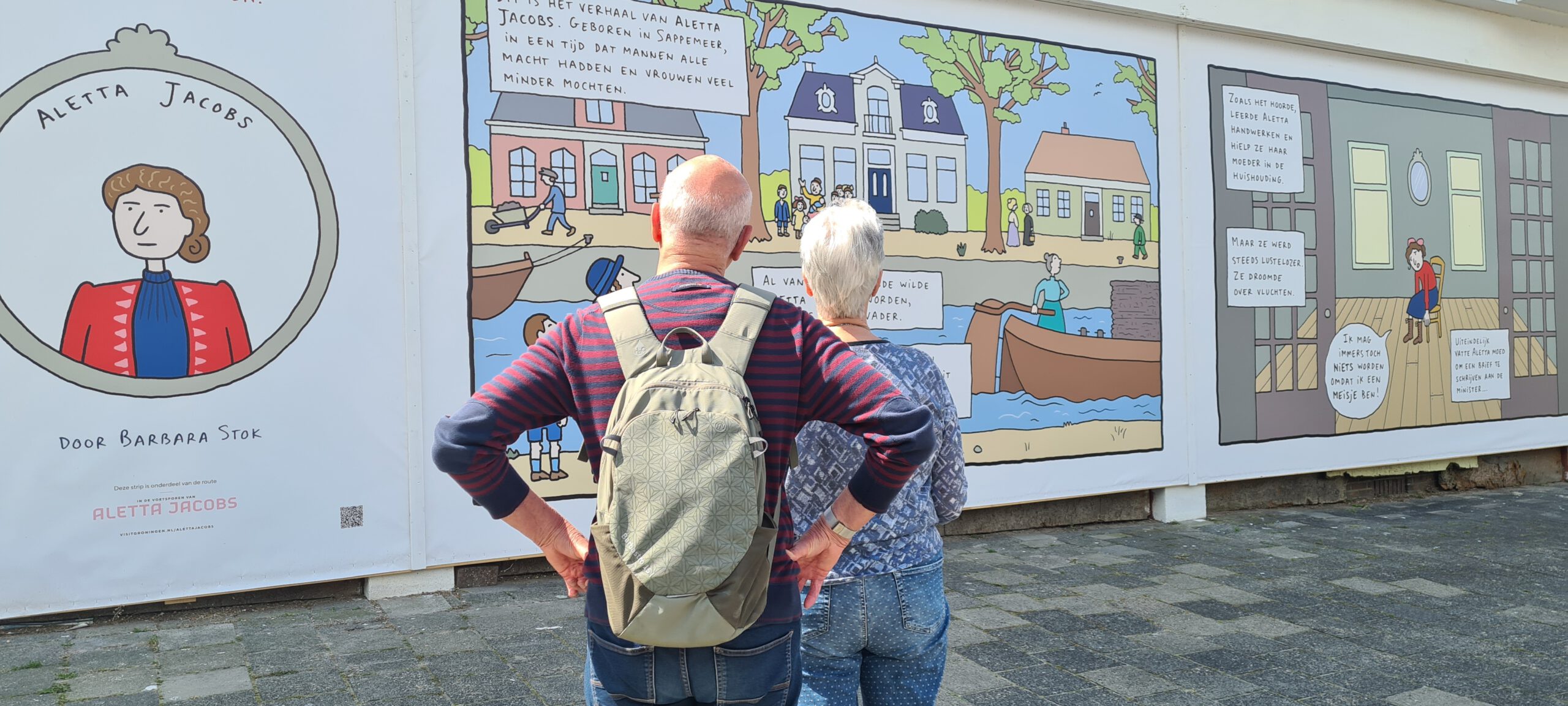Desgewenst kun je op eigen gelegenheid de wandeling uitbreiden naar station Hoogezand-Sappemeer. Op het stationsgebouw vind je een levensgrote strip met het levensverhaal van Aletta Jacobs, gemaakt door stripkunstenaar Barbara Stok.